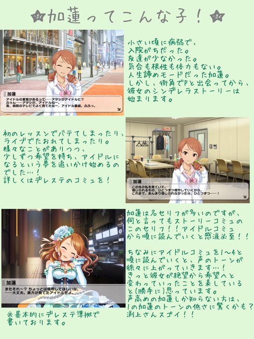 たくちゅなp 加蓮については同じセリフがデレステのストーリーコミュ31話にもあるけどそっちは 大丈夫 貴方が育てたアイドルだよ 読点の部分が句点になっている なのでこのセリフは制服コレクションの方です